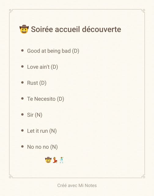 | Chorée | niveau | Nbre Murs | type | Chorégraphe | Titre musique | Chanteur |