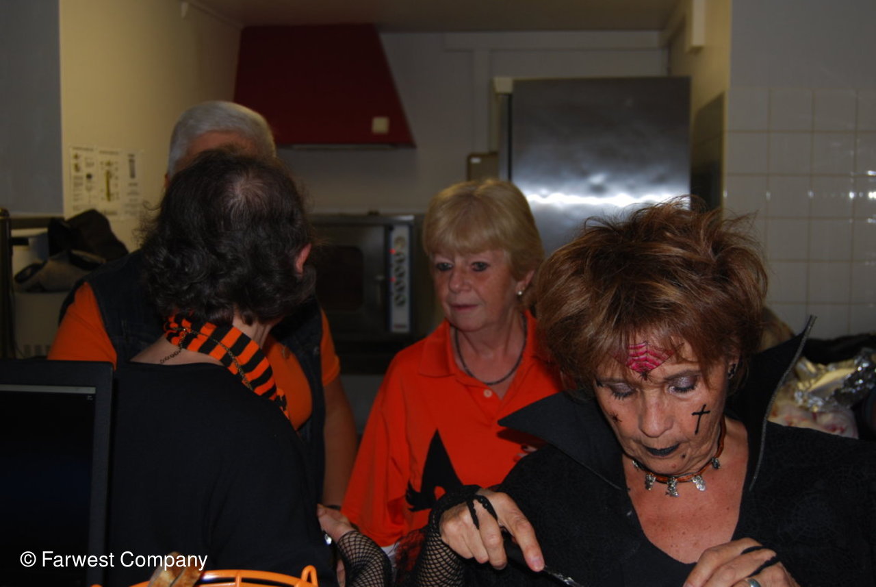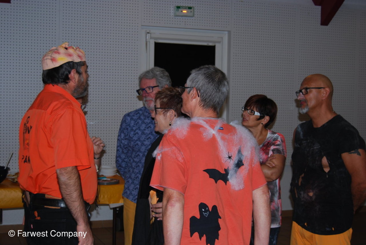 Toujours est-il que nous avons eu une chude et bonne ambiance tout au long de la soirée, des adhérents qui ont parfaitement joué le jeu de Halloween avec des déguisements aussi variés ... des préparations culinaires....